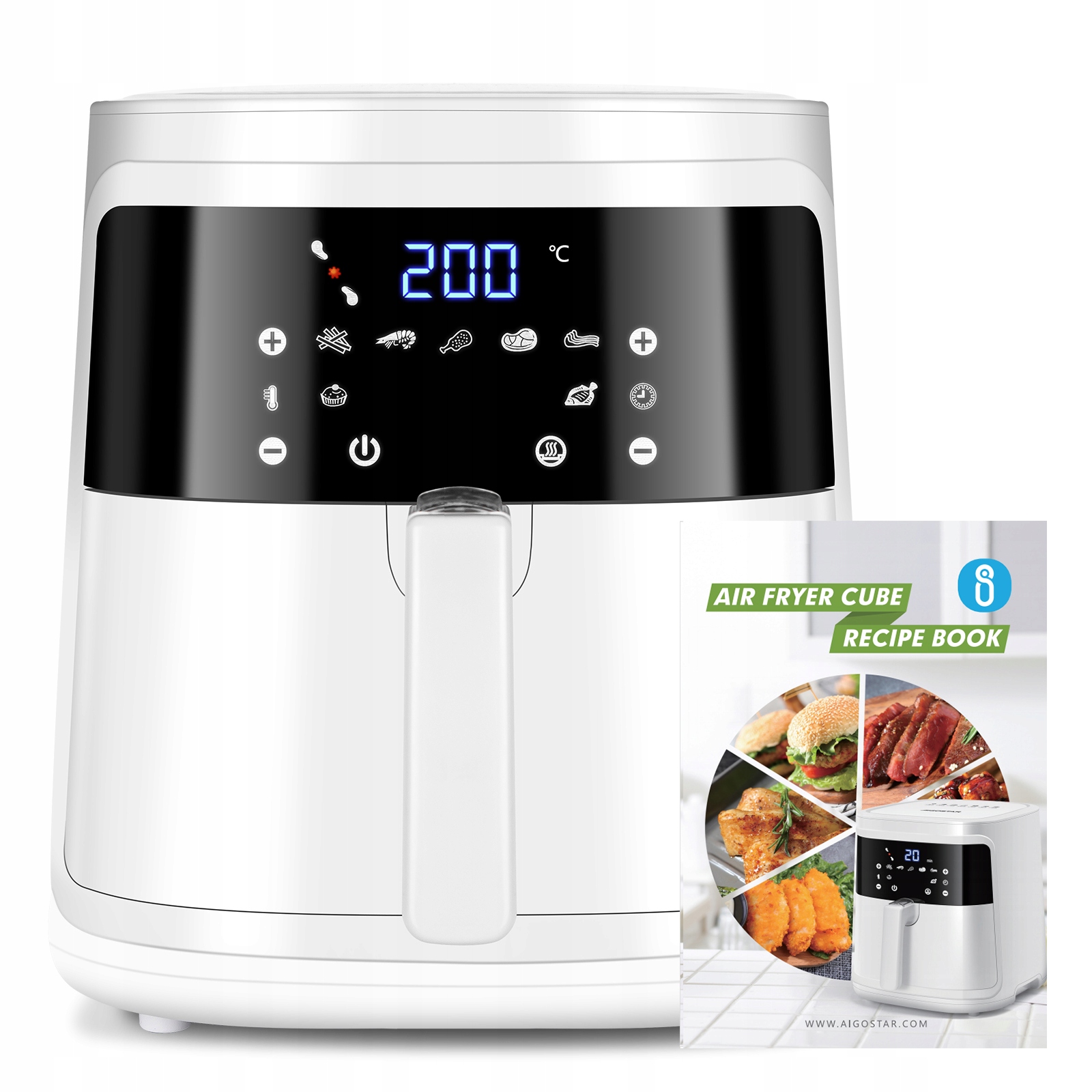 Karšto oro gruzdintuvė Aigostar 7L, 1900W balta + Dovana aliejaus dozatorius