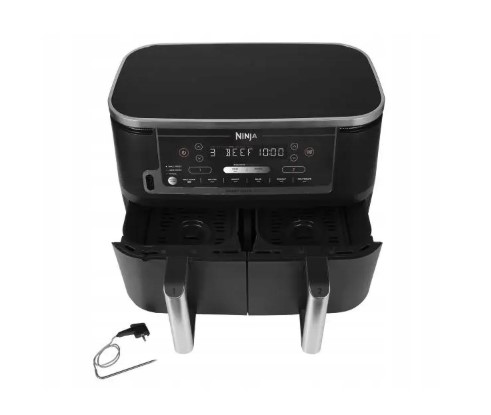 Ninja AF451EU karšto oro gruzdintuvė – galingas 2470 W prietaisas su 9,5 l talpa ir integruotu maisto termometru, leidžiantis tiksliai kontroliuoti kepimą. Dviguba kepimo zona suteikia galimybę vienu metu ruošti skirtingus patiekalus, o karšto oro technologija užtikrina traškius rezultatus su minimaliu riebalų kiekiu. Puikiai tinka kepimui, grilinimui ir desertams – greitas, patogus ir sveikesnis pasirinkimas kasdienai.