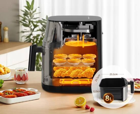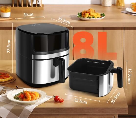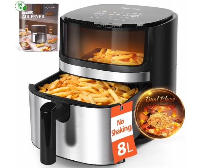 Taylor Swoden karšto oro gruzdintuvė leidžia paruošti gardžius, traškius patiekalus naudojant minimalų kiekį aliejaus arba nenaudojant jo išviso. Dėka didelės 8 litrų talpos ji puikiai tinka visos šeimos pietums ar vakarienei, leidžiant pagaminti net visą vištą vienu metu.