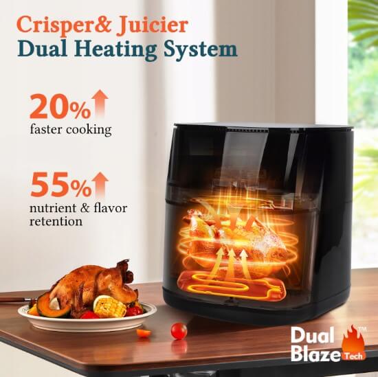 Su 2000 W galia gruzdintuvė sutrumpina gaminimo laiką iki 30 %, o inovatyvi Blaze dvigubo kaitinimo technologija užtikrina puikų traškumą kiekvieną kartą. Taylor Swoden Air Master – tai sveikesnis ir efektyvesnis būdas gaminti mėgstamus patiekalus, neprarandant skonio ar tekstūros.