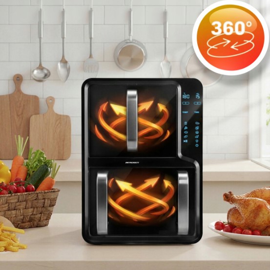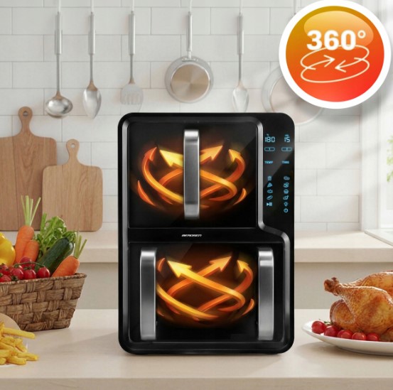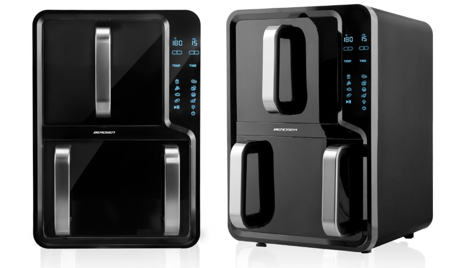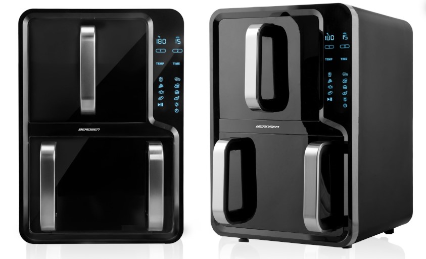 Dviejų kamerų vertikali oro gruzdintuvė BERDSEN BD-664, 12 l, 2800 W, yra modernus ir funkcionalus virtuvės prietaisas, skirtas sveikesniam ir patogesniam maisto gaminimui. Šis įrenginys sujungia dvi atskiras kepimo kameras, didelę talpą, galingą kaitinimo sistemą ir išmanų valdymą, todėl leidžia vienu metu ruošti skirtingus patiekalus ir sutaupyti laiko kasdienėje virtuvėje.