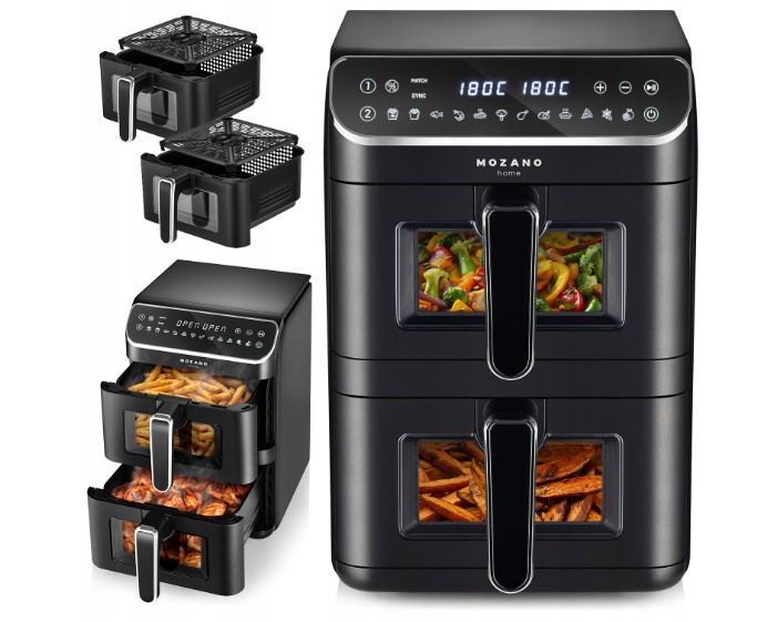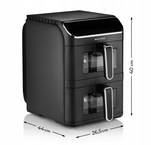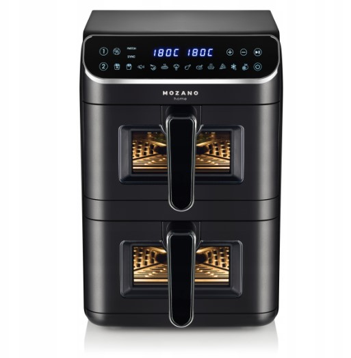 „Mozano AirTower Duo“ – tai naujos kartos vertikali oro gruzdintuvė, sukurta tiems, kurie nori gaminti greitai, patogiai ir sveikiau, neužimdami daug vietos virtuvėje. Inovatyvus vertikalus dviejų kamerų dizainas leidžia išlaikyti didelę talpą ir funkcionalumą, tačiau užima gerokai mažiau stalviršio ploto nei įprastos dvigubos gruzdintuvės.