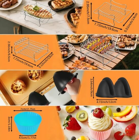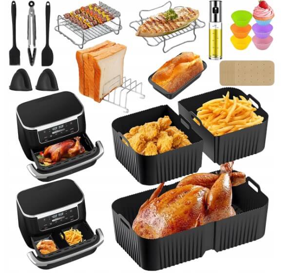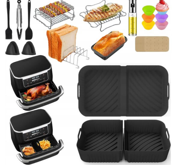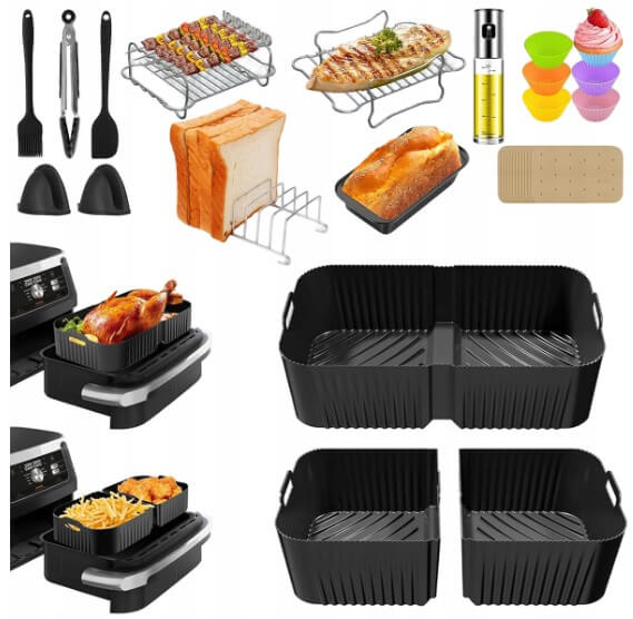 Šis 24 dalių priedų rinkinys sukurtas specialiai „Ninja Foodi“ 10,4 l (AF500EU / AF500EUCP) karšto oro gruzdintuvėms, kad gaminimas būtų lengvesnis, efektyvesnis ir patogesnis. Su šiuo rinkiniu galite ruošti įvairius patiekalus vienu metu, taupant laiką ir pastangas.
