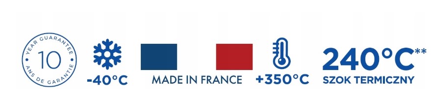 - Atsparus terminiam smūgiui iki 240 °C: išėmus iš šaldiklio esant -40 °C temperatūrai, galima dėti į orkaitę 240 °C temperatūroje
