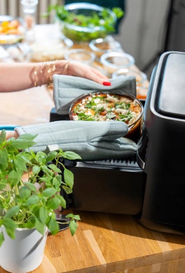 Visiškai nauja gaminimo patirtis su „Pyrex®“ linija, sukurta būtent karšto oro gruzdintuvėms. Šioje kolekcijoje – net 7 skirtingi formų dydžiai, todėl kiekvienas gali lengvai išsirinkti idealiai savo karšto oro gruzdintuvei tinkančią formą.