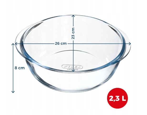 Stiklinė kepimo forma Pyrex D-26x23xcm. 2.3L talpa karšto oro gruzdintuvei