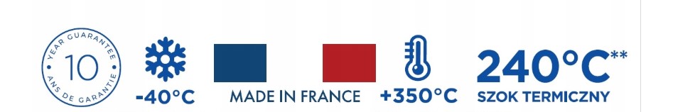 - Atsparus terminiam smūgiui iki 240 °C: išėmus iš šaldiklio esant -40 °C temperatūrai, galima dėti į orkaitę 240 °C temperatūroje